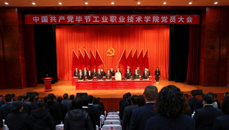 12月17日下午,中国共产党毕节工业职业技术学院党员大会第一次全体会议在学院会议中心隆重召开。会场内,金色党徽在整齐划一的鲜红旗帜的衬托下熠熠生辉、引人瞩目,佩带醒目的党徽和出席证的参会党员们着装整齐、精神抖擞,齐聚会议中心。冬日的毕节工业职业技术学院,充满着一片喜庆气氛。